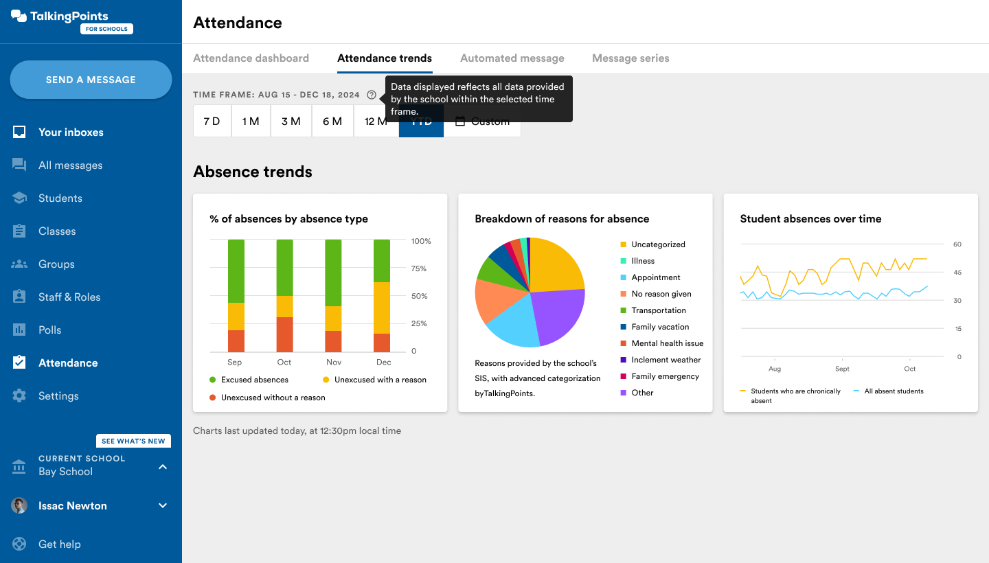 TalkingPoints helps schools engage families in understanding the “why” behind absences, building trust and addressing barriers before they lead to chronic absenteeism.