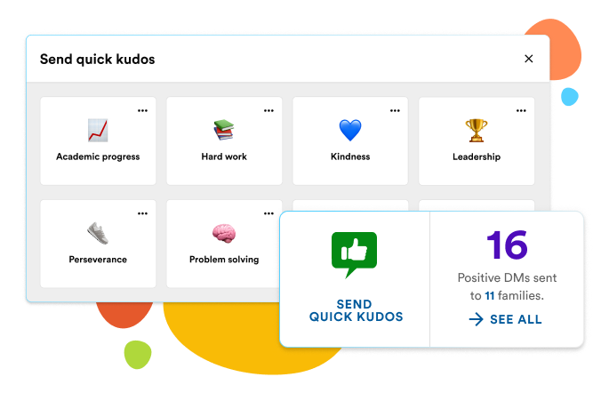 - Quick kudos makes it simple for teachers to highlight student successes and share a fun, encouraging emoji with families