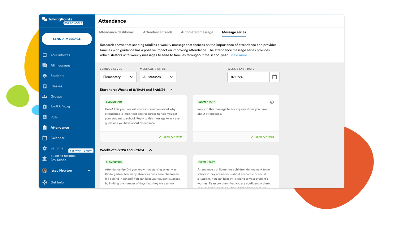 - Family check-ins help teachers stay connected year-round with pre-built messages aligned with key school calendar moments that help keep families engaged in what’s happening at school